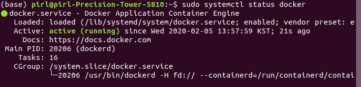 설치가 완료되고 나서 아래의 명령어를 입력해주면 도커가 정상적으로 실행되는 모습을 볼 수 있다.