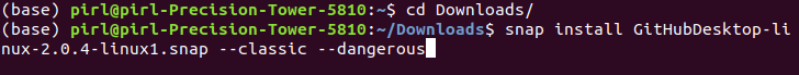 snap install ~/Downloads/GitHubDesktop-linux-2.0.4-linux1.snap --classic --dangerous