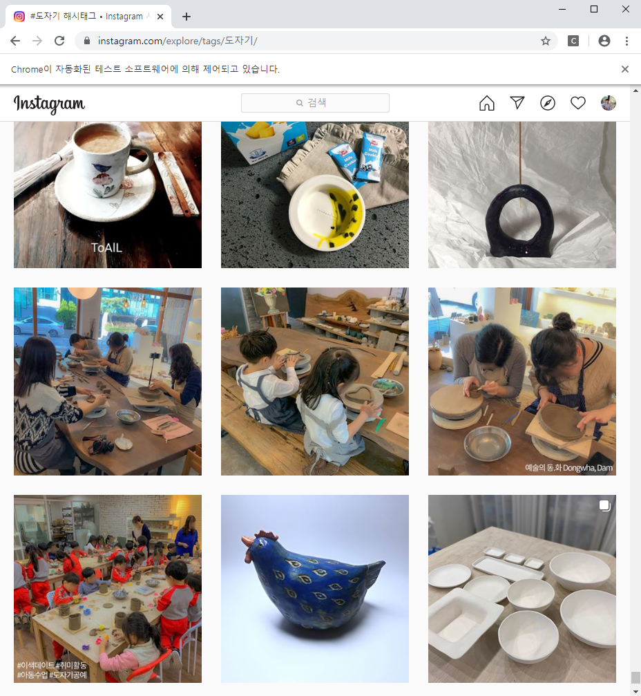 코드를 실행하면 다음과 같이 크롬 창이 실행되서 자동으로 스크롤을 내리면서 전체 게시물들의 태그를 수집합니다.