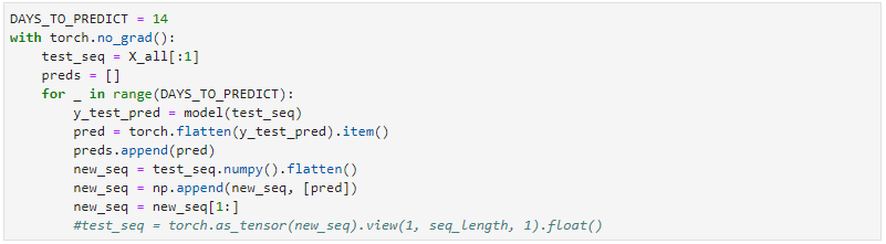 DAYS_TO_PREDICT는 예측할 날짜의 수입니다. 저는 14일을 예측하는 것이 목표였기 때문에 14로 설정하였습니다.
