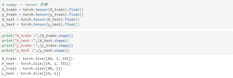 다음으로 PyTorch 모델에 데이터를 올리기 위해 torch.tensor로 변환해줍니다.