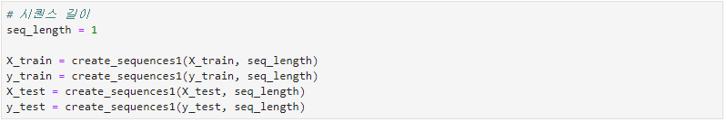 하지만 저는 시퀀스를 따로 만들지 않고 사용했습니다. 시퀀스를 만들지 않고 사용하려면 seq_length를 1로 주면됩니다.