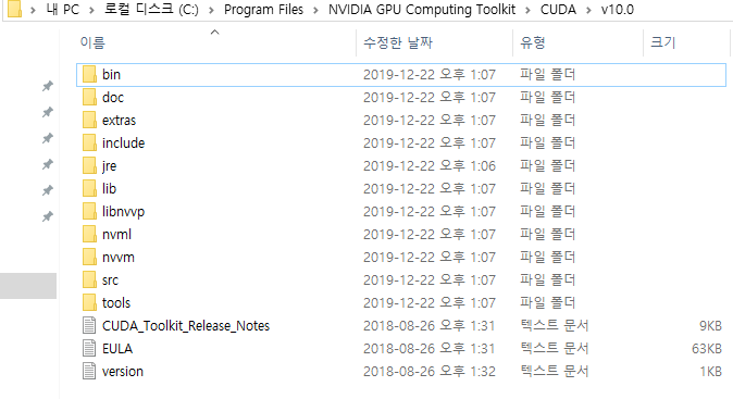 C:\Program Files\NVIDIA GPU Computing Toolkit\CUDA\v10.0 로 들어가시면 됩니다.
