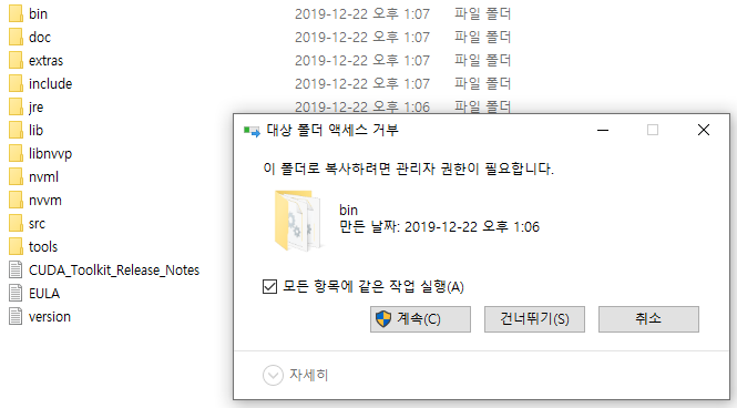 Cuda Toolkit이 설치된 경로는 다른 설정을 하지 않았다면