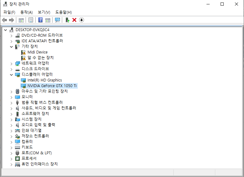 우선 자신이 가지고 있는 GPU 그래픽 카드를 확인합니다.