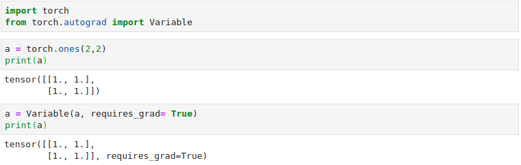 - 자동 계산을 위해서 사용하는 변수는 torch.autograd 패키지 안에 있는 Variable를 사용해야된다.